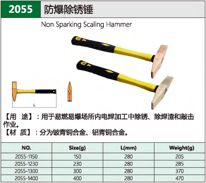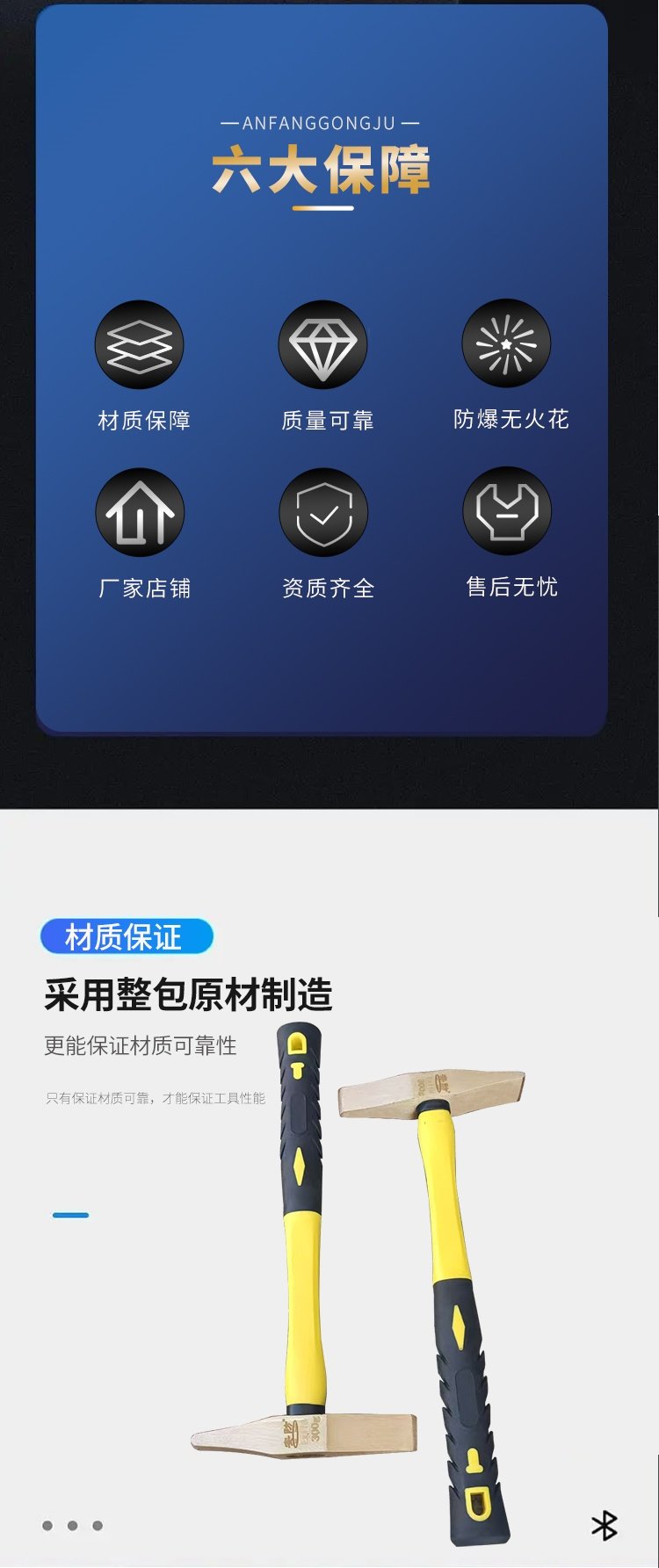 防爆除锈锤全铜扁嘴锤子150g-600g铜合金无火花小榔头鸭嘴锤安防