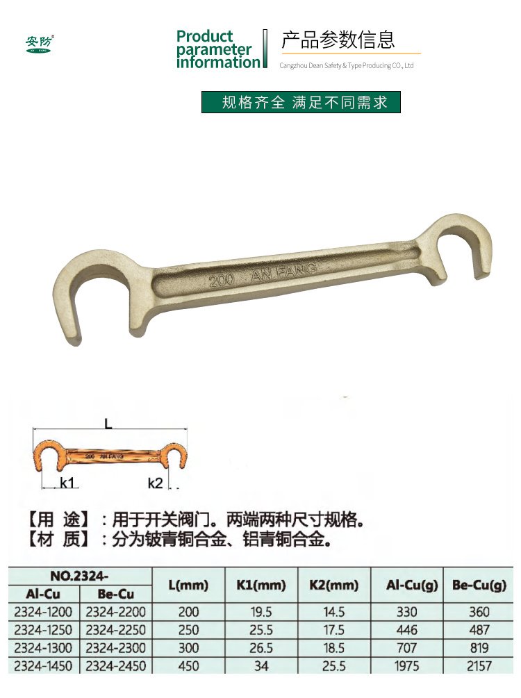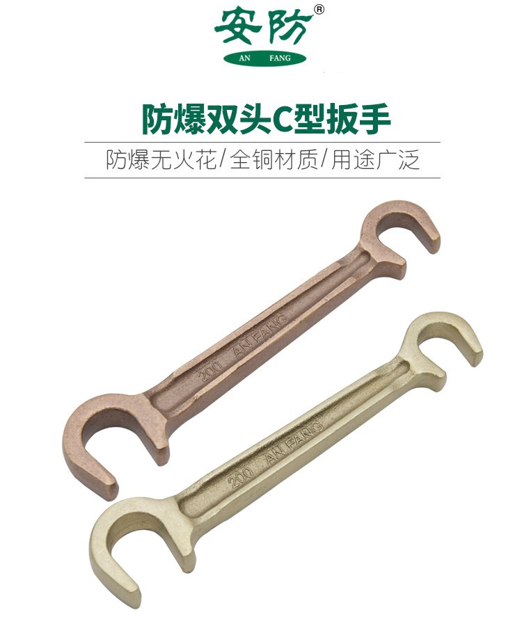 防爆双头C型扳手200mm-450mm铜合金无火花侧面勾扳手月牙勾扳子