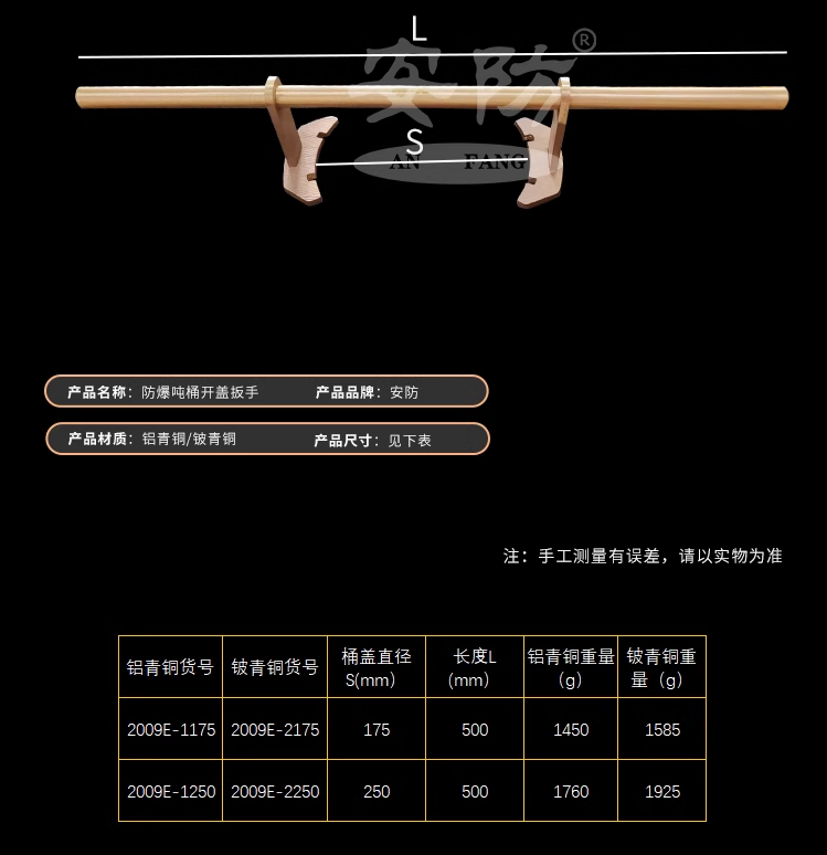 防爆吨桶扳手全铜无火花拧盖器175mm250mm开桶器扭盖扳550mm650mm
